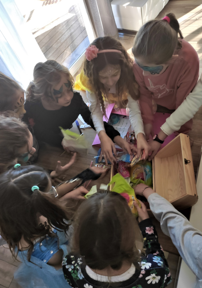 La chasse au trésor est souvent associée avec d’autres activités (maquillages, ballons sculptés, tatouages éphémères, vernis à ongles avec stickers, activités manuelles…)